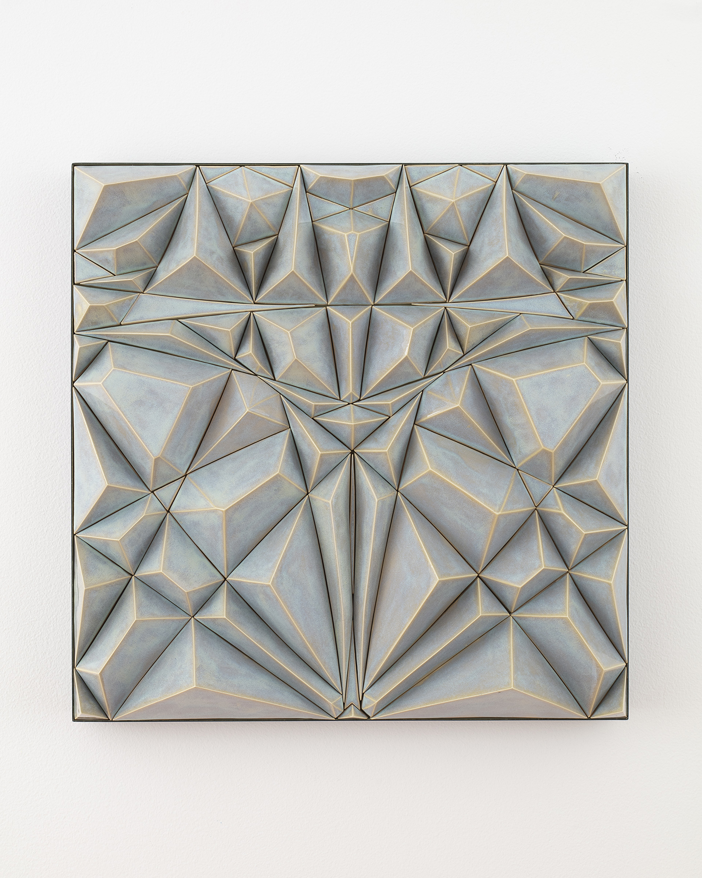 Juan Parada’s series of geometric reliefs also aims to question limits of a technical and material order. His methods of production reconcile archaic processes with those proper to contemporary technologies. In his pieces, traditional materials and techniques coexist with a design obtained through digital software. Aided by this technology, Parada generates vector drawings that are then used to create a kind of framework that guides the shaping of his reliefs. Their volume, however, is interpreted by the artist and executed manually. Although the reliefs look industrial, or like 3-D prints, as if they were made out of plastic or metal, each component was fabricated by the artist himself, demonstrating a mastery of precise modelling that stems from a manual practice he has cultivated since childhood. This erasure of gesture in the production of each module alters the perception of its materiality and demands a certain attention from the viewer. In the same way, it points toward the way Parada defines a portion of his output as “anti‑ceramics,” based on how such pieces eliminate both gesture and a certain pictorial quest associated with the use of glazes.