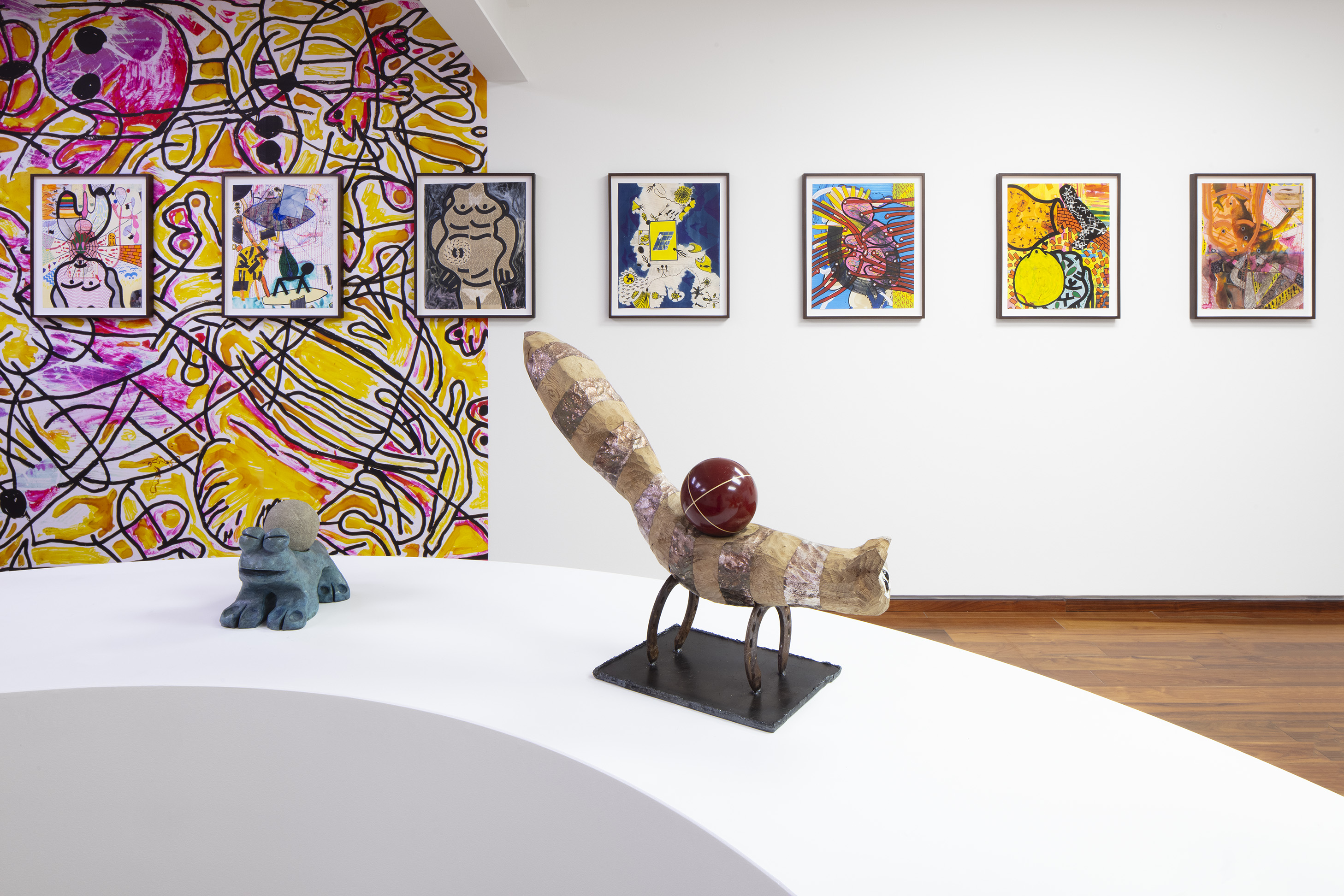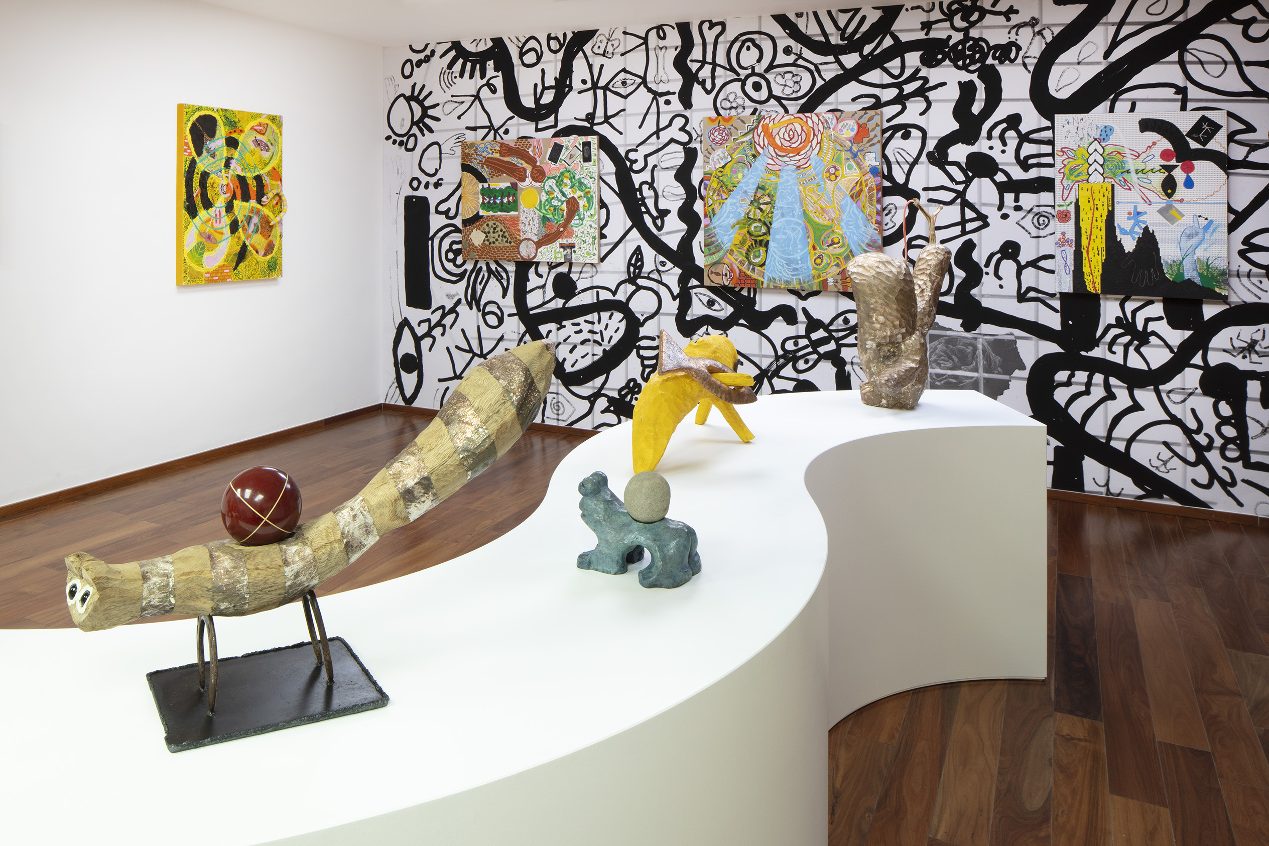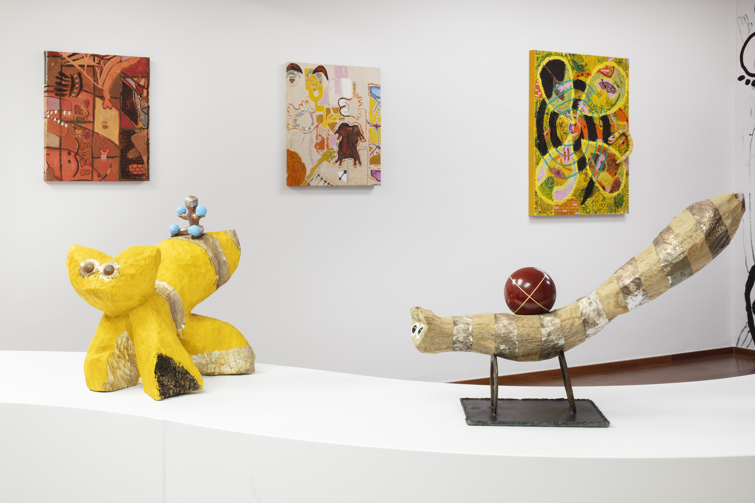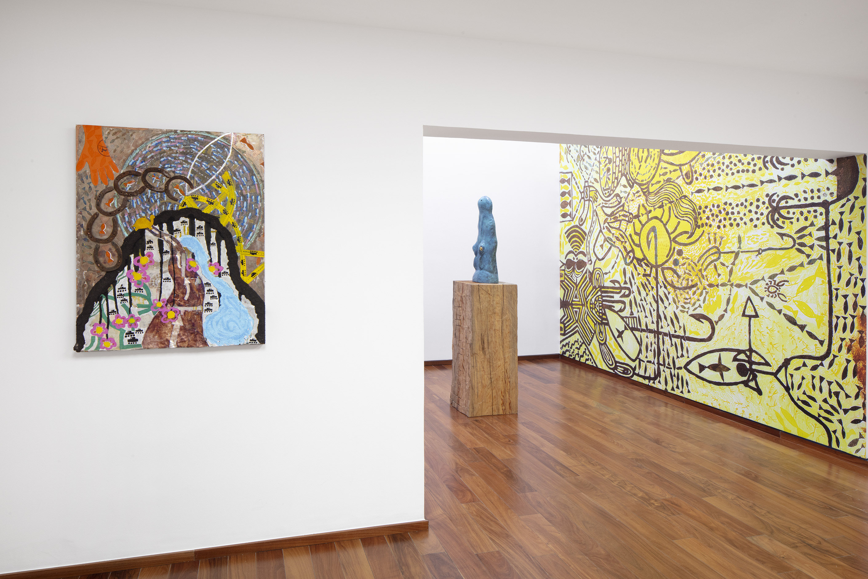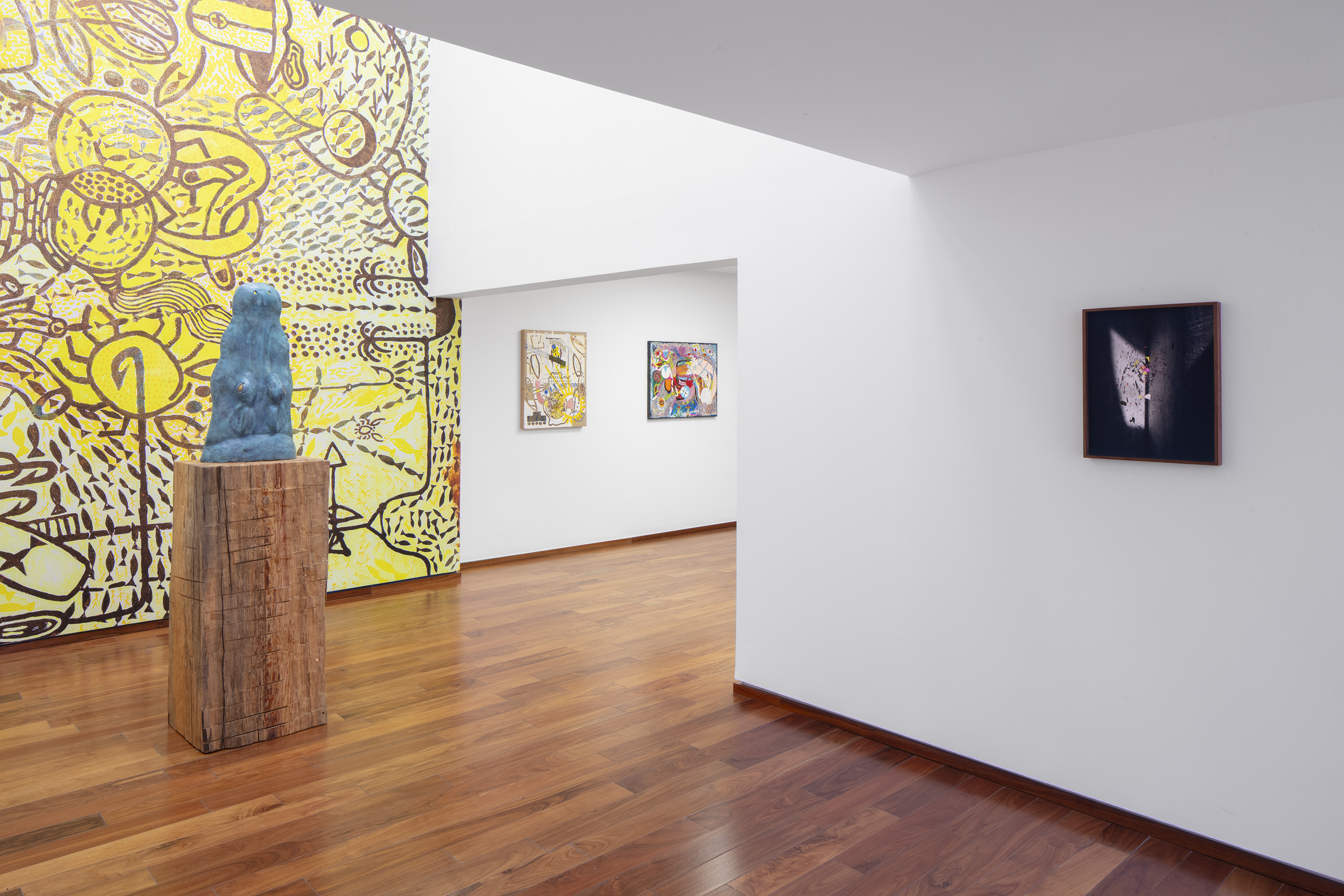 For other sculptures featured in Ruido Viator, Chaves has used the techniques of woodcarving and modeling in clay. In these pieces we see him exploring materiality, as well as representations of animals that are still part of everyday life in certain parts of Mexico City (such as toads and ring-tailed cacomistles), together with fantastic animals he has imagined himself. As we saw the crocodile sculpture, Ramiro Chaves is creating a contemporary bestiary that invites visitors to reflect on the nature of animals.