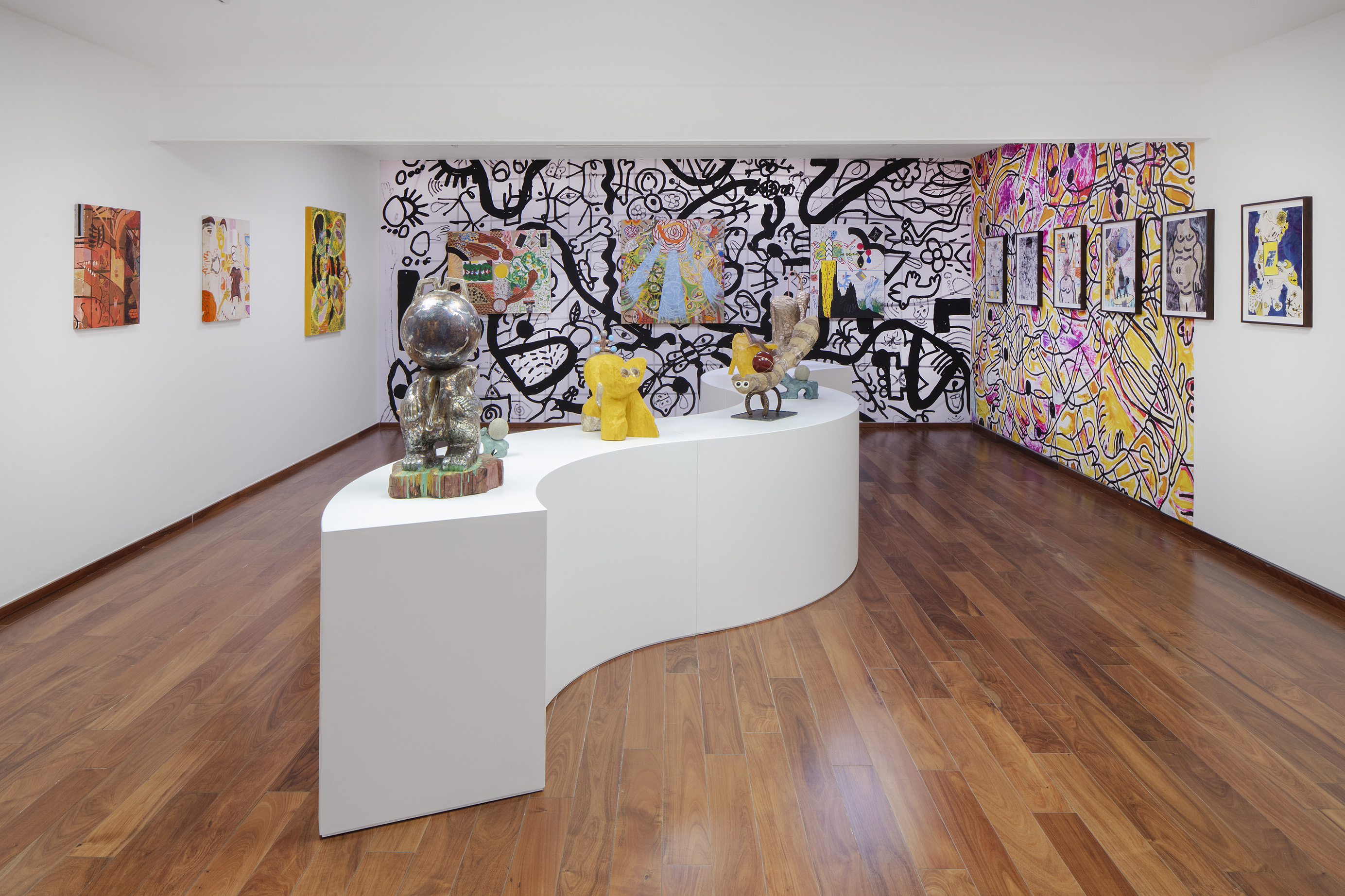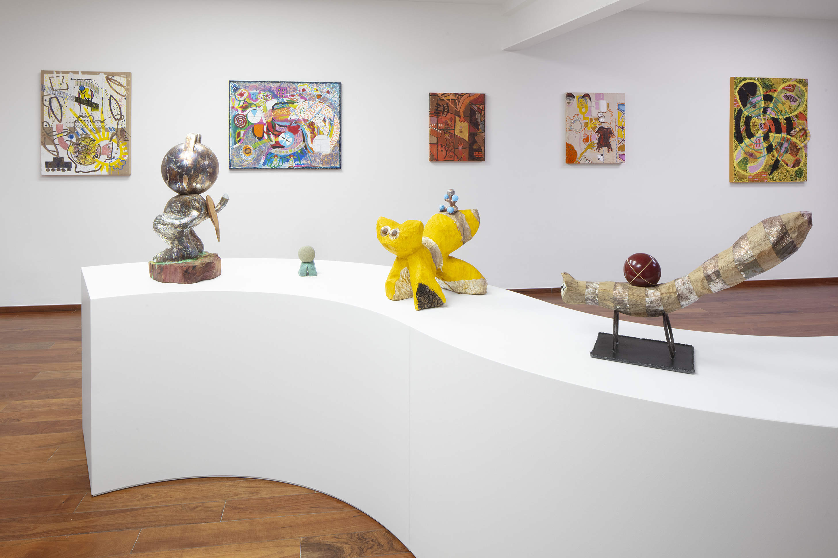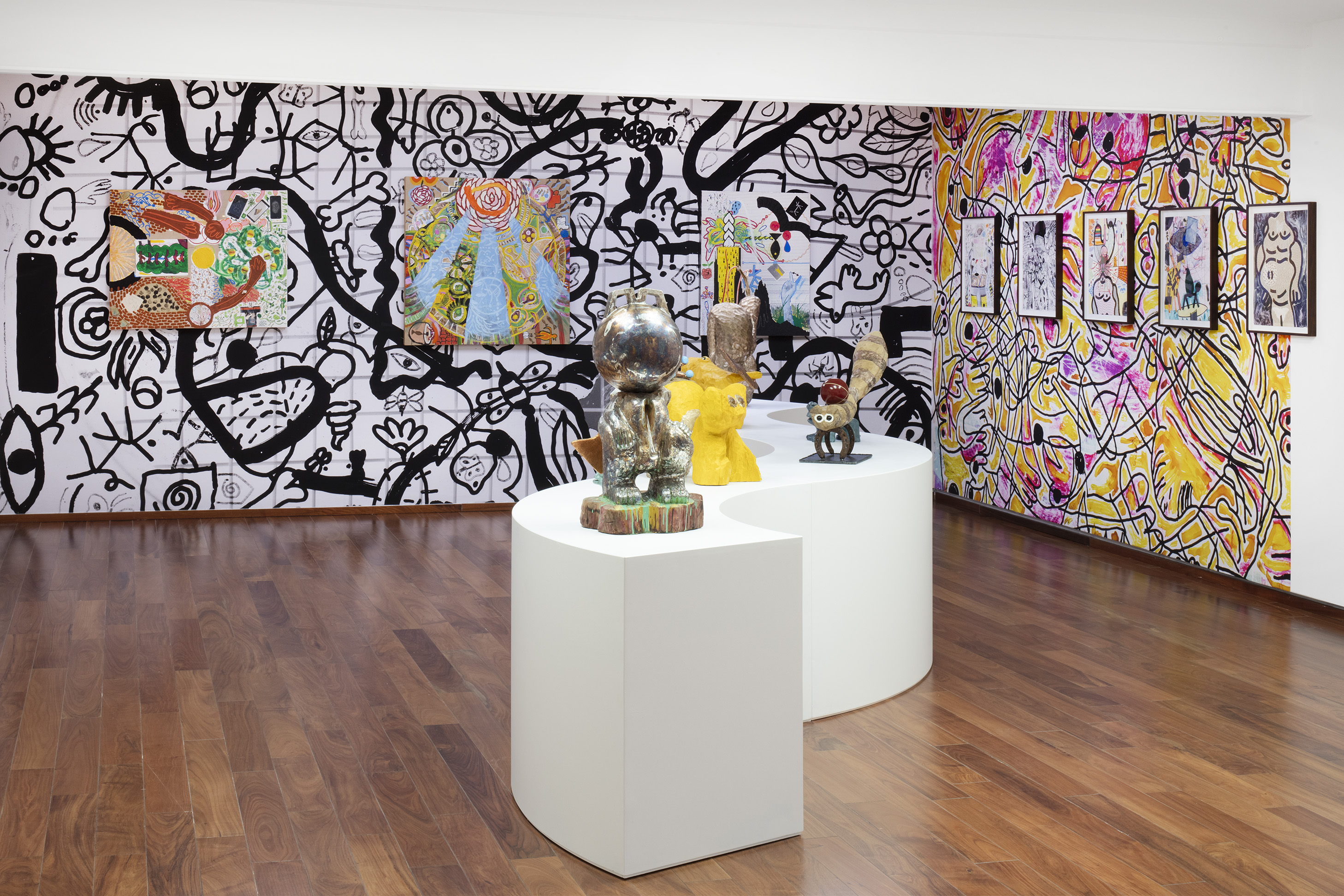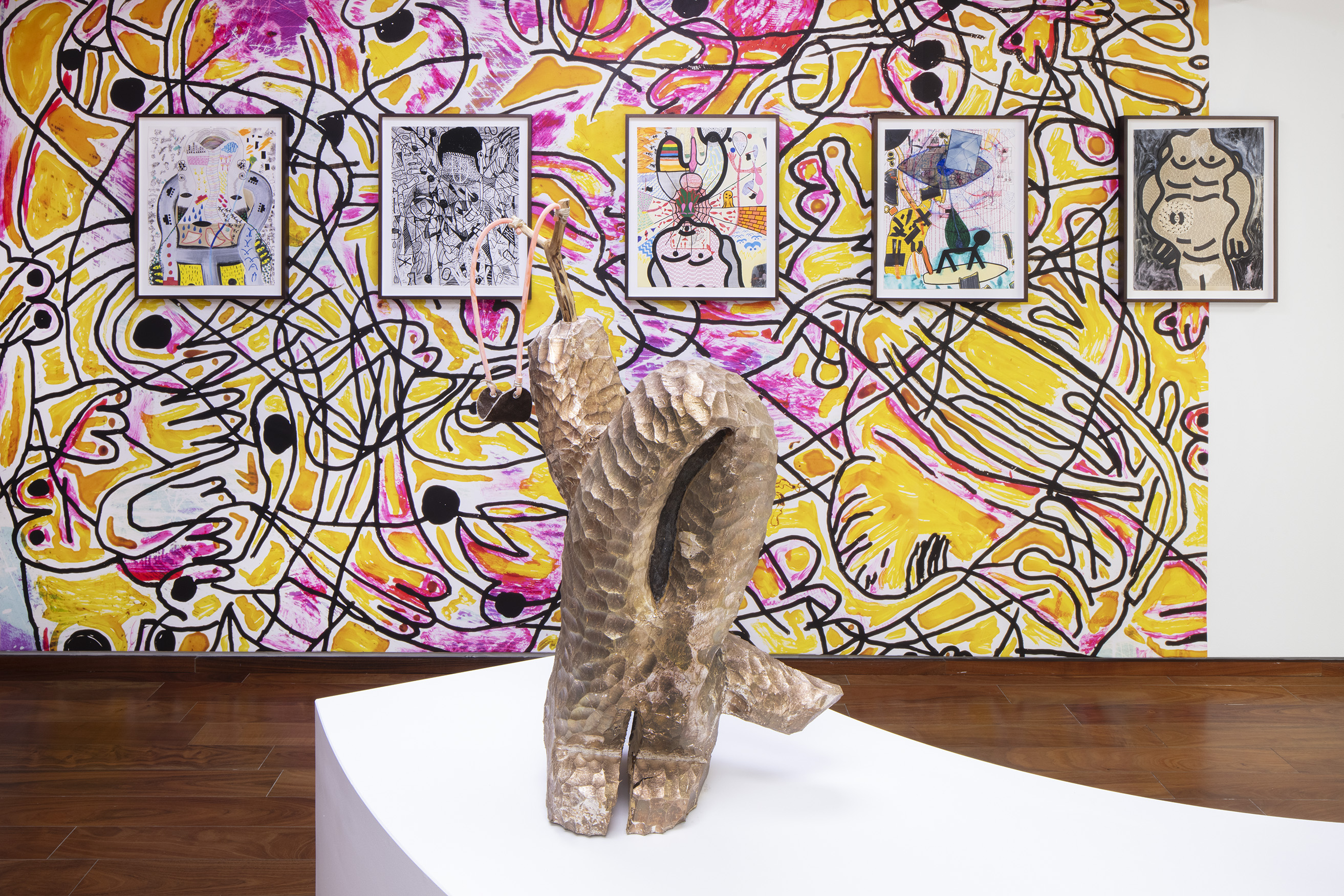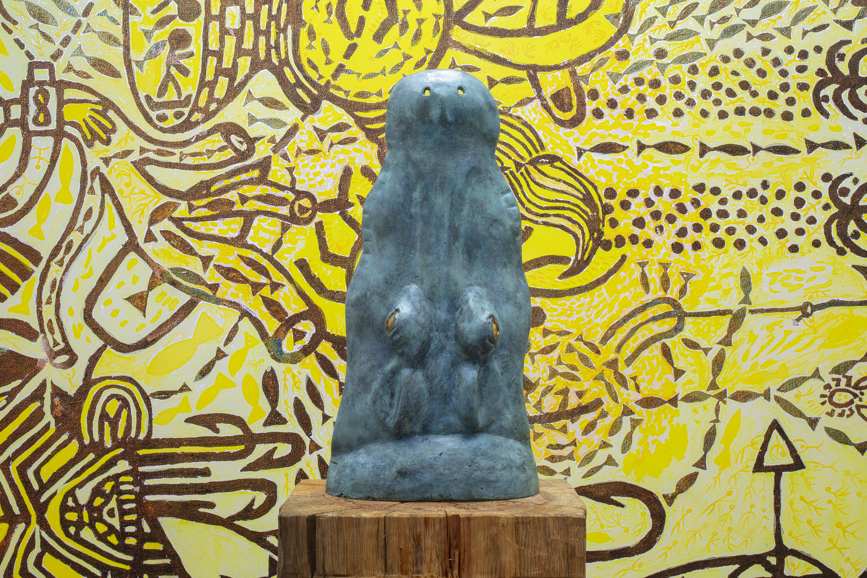 For other sculptures featured in Ruido Viator, Chaves has used the techniques of woodcarving and modeling in clay. In these pieces we see him exploring materiality, as well as representations of animals that are still part of everyday life in certain parts of Mexico City (such as toads and ring-tailed cacomistles), together with fantastic animals he has imagined himself. As we saw the crocodile sculpture, Ramiro Chaves is creating a contemporary bestiary that invites visitors to reflect on the nature of animals.