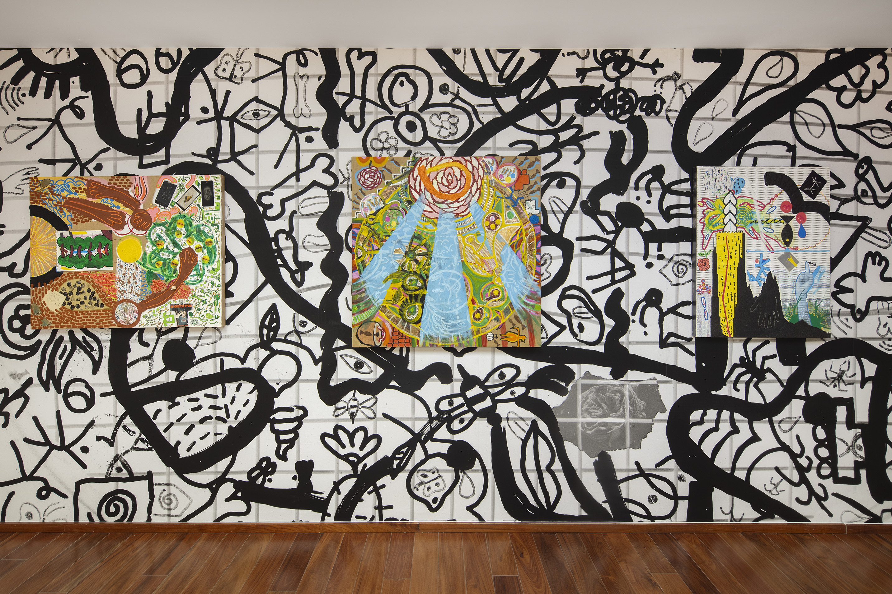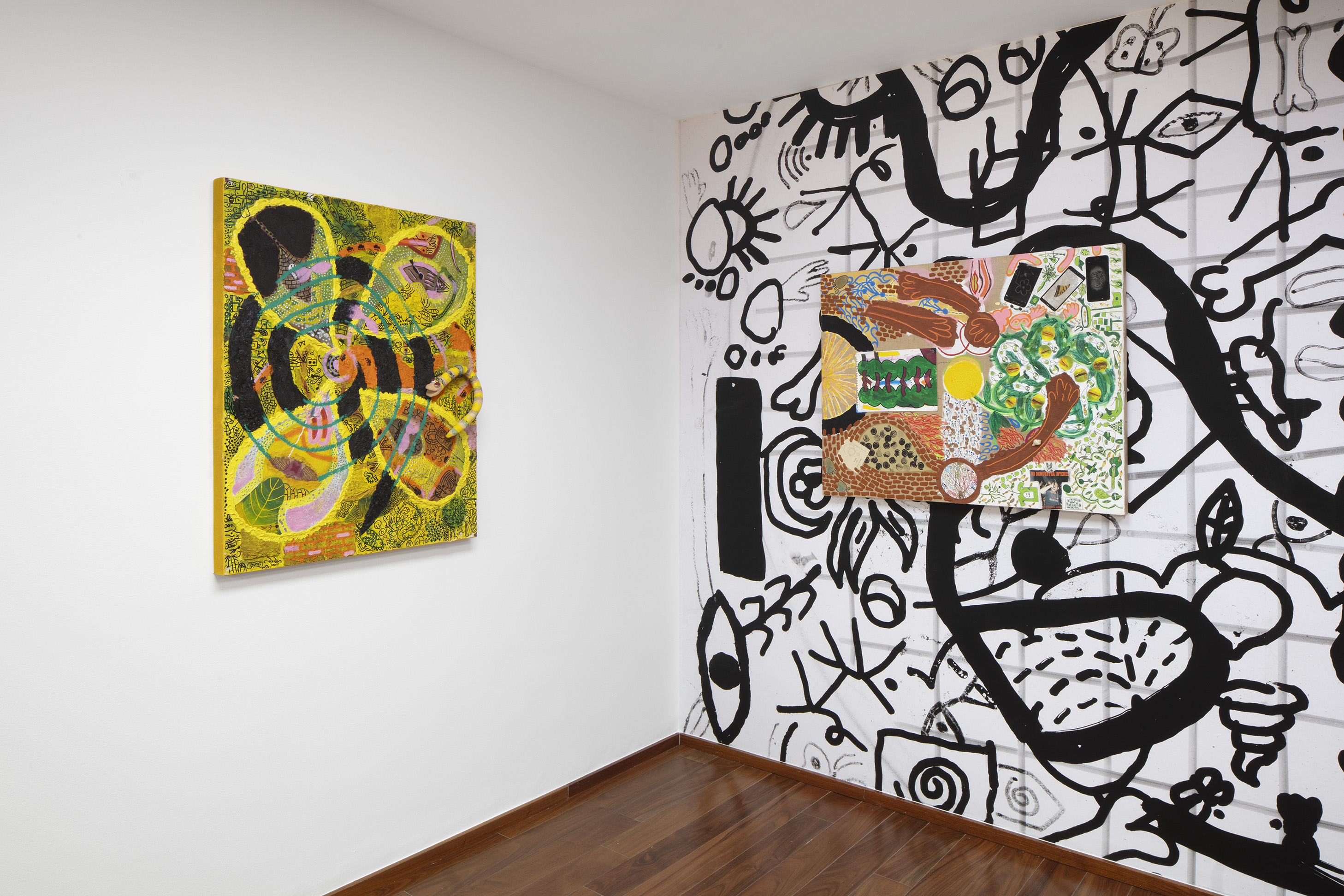In this exhibition, Ramiro Chaves presents paintings made using acrylic, clay, oil, and prints on paper, as well as found materials like cellphone screens, album covers, and bits of broken glass. Take, for example, Fogón en el Puente (Hearth on the Bridge), a painting in which Chaves depicts elements of nature in harmony with certain human activities, while at the same time using short brushstrokes to create layers of paint—thereby generating a uniform plasticity in the piece—and incorporating several of the materials mentioned above.