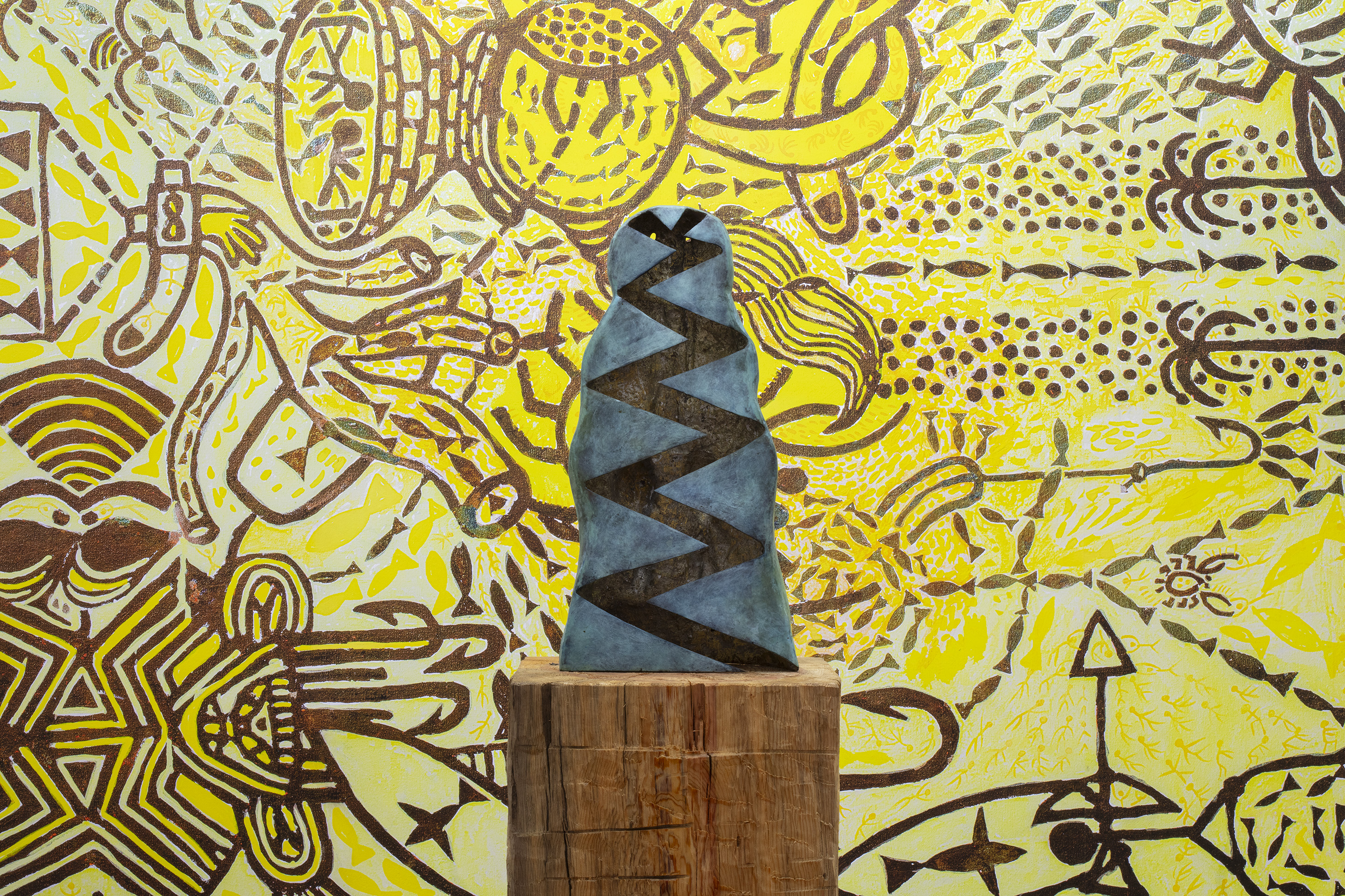Touring the city on foot and in vehicles forms another of the artist’s creative paths. On his travels he observes people’s movements and the presence of diverse objects in department stores, noticing the place they occupy in space. Take, for example, the sculpture Coco (2025), a piece that initially started off as a sculpture in plastic, which Chaves acquired from a place that sells second-hand items. This particular object was used as a prop for a film. The first version of this crocodile’s head was a teaching tool that Chaves used in a children’s workshop, first as an occupant of the space where he was holding his sessions, then as part of a group show organized by the members of the workshop. Eventually, Chaves ended up making a sculpture in bronze, a material he was using for the first time in his sculptural practice, creating a replica of the found object. Here we see the artist adding symbolic as well as heuristic layers to the object, causing it to take on new meaning in the educational setting, until it finally came alive as a work of art.
